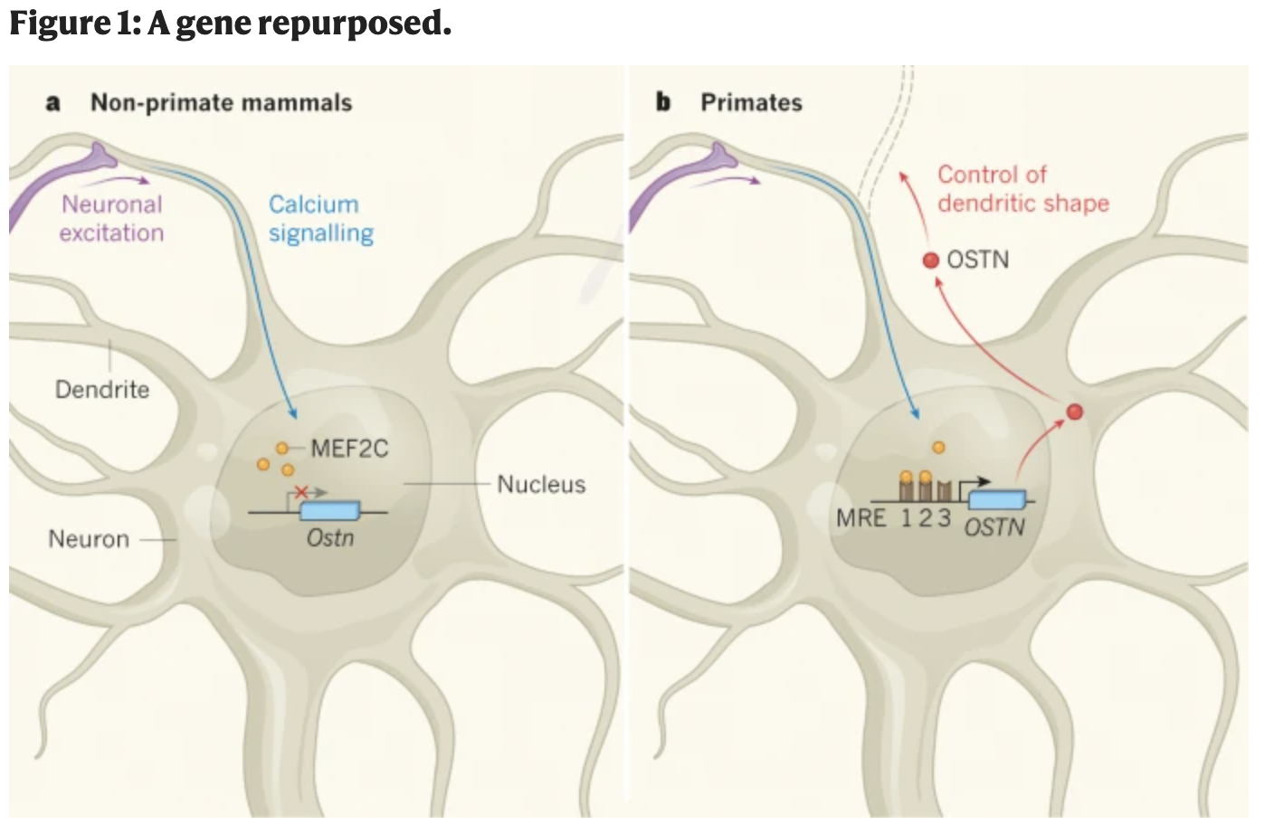 In many mammals, the gene Ostn is expressed in muscles and bones. The discovery by Ataman and colleagues that the primate OSTN gene has been repurposed to also act in neurons provides clues to how humans evolved their cognitive abilities.