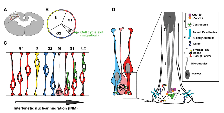 The nuclei of dividing neural progenitors undergo a cell-cycle-dependent change in position along the apico-basal axis known as interkinetic nuclear migration (INM). The functional relationship between INM and the mode of division of neural progenitors remains elusive, in part because its regulation at the molecular level is poorly understood. In this issue of Neuron, Xie et al. identify two centrosomal proteins (Cep120 and TACCs) regulating the INM of cortical neural progenitors.